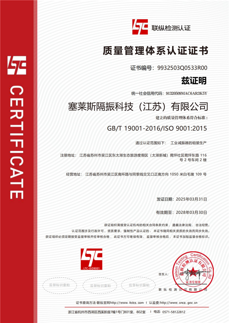 质量管理体系认证证书
